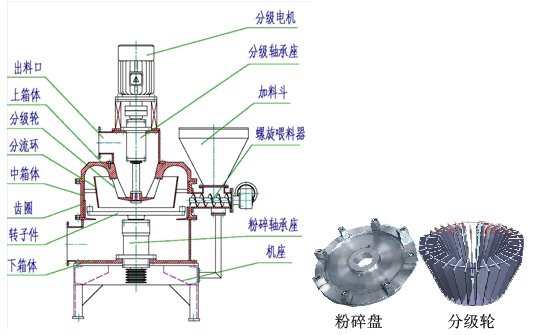 1. 本机内置分级机替代传统机型的筛网来调节细度。